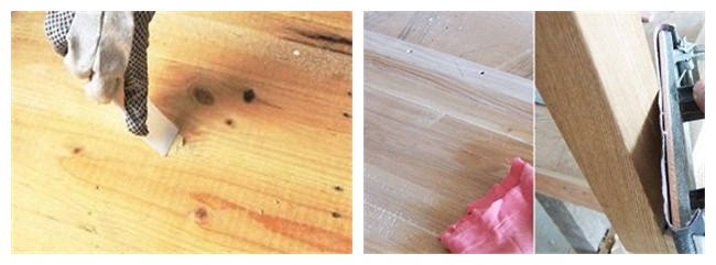 ● 視木紋深淺而定,膩子以刮得薄為好,刮膩子時應(yīng)用力刮入木縫內(nèi),膩子干燥后用砂紙打磨徹底;