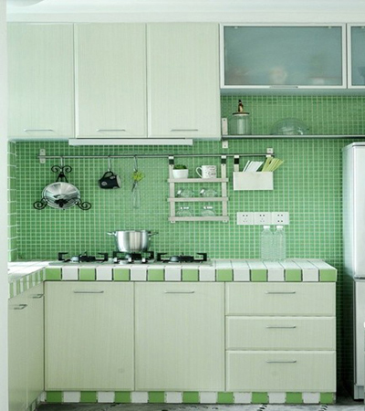 十分喜歡這樣的廚房,綠色清爽田園風(fēng)格廚房櫥柜,處處都很美。