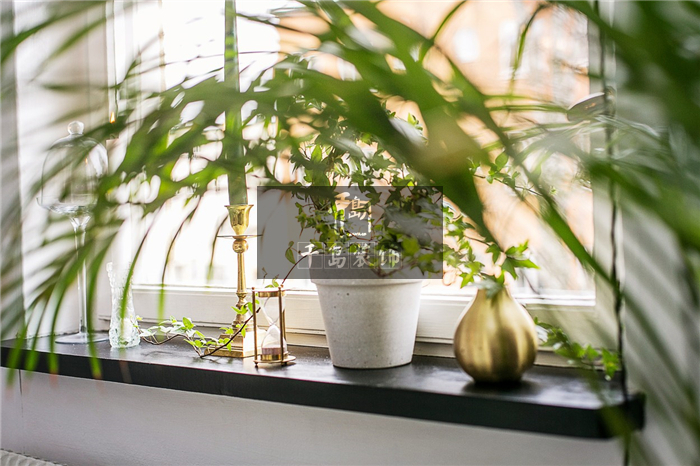 臥室的窗臺處照樣運(yùn)用了大量的綠植加以點(diǎn)綴,為空間增加了一分生機(jī)。但其中零星點(diǎn)綴的金屬擺件卻是和綠植相輔相成,不會太過冰冷,亦不會太過柔和,既豐富了混搭空間的主題,又增加了些許居家的品質(zhì),一舉兩得。
