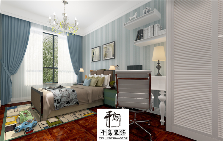 兒童房巧妙的設(shè)計(jì)內(nèi)部空間,既不空曠也不浮夸而且還去除了冰冷感。整體色調(diào)白藍(lán)相加,給孩子一個健康溫馨的成長和休息的空間!