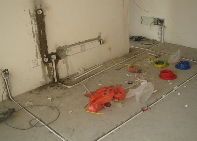 4.電路改造、電路改動涉及到空間的定位,還要開槽,所以要提前進行。老房改造要注意線徑的問題,電路容量有限,不能任意地添加用電設(shè)備。電氣布線采用暗管鋪設(shè),導線在管道內(nèi)不應(yīng)有接頭,強電插座和弱電插座之間的間距要大于50cm,動力電(設(shè)備電)和照明電不能混接,嚴禁將導線直接埋入抹灰層。在電氣施工完成后,要進行漏電開關(guān)檢測,合格后方能使用。