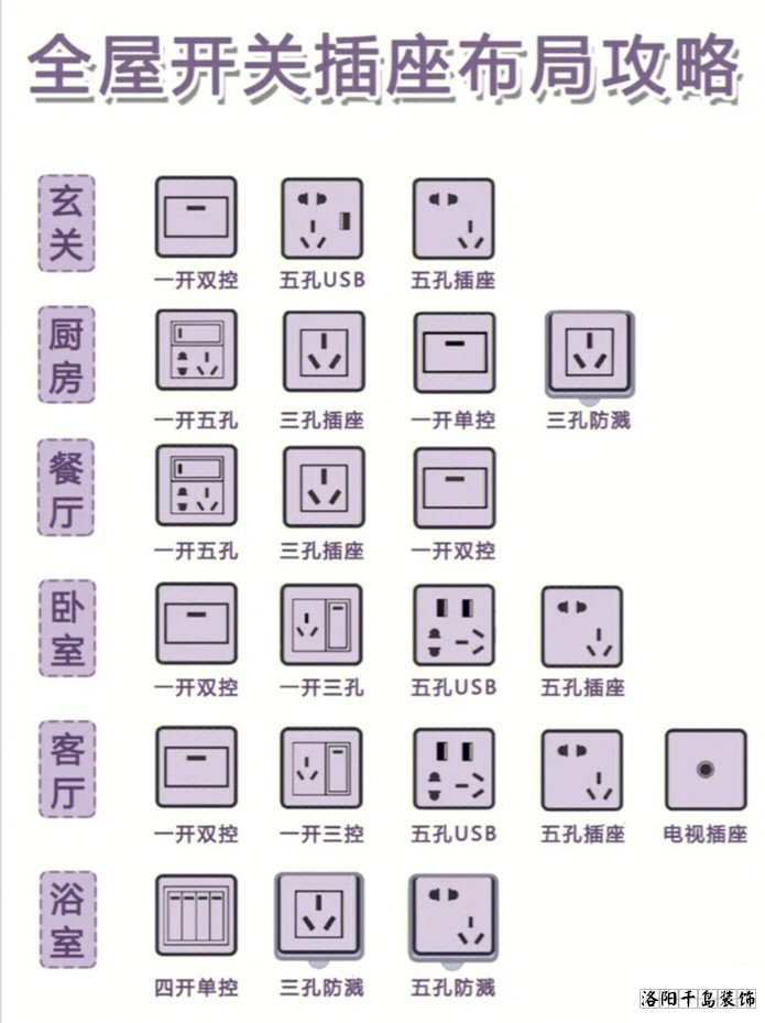 新房裝修開關(guān)插座怎么留?這已經(jīng)是一個(gè)被無數(shù)人都說過的話題,對(duì)于常規(guī)的開關(guān)插座布局方法,詳細(xì)大家都已經(jīng)很清楚了,今天洛陽千島裝飾的小編就著重給大家講一下,開關(guān)插座預(yù)留最容易忽略的10個(gè)關(guān)鍵點(diǎn),遺漏這10個(gè)開關(guān)插座,后期沒法補(bǔ)救,大大影響您后期入住的舒適度和實(shí)用性。