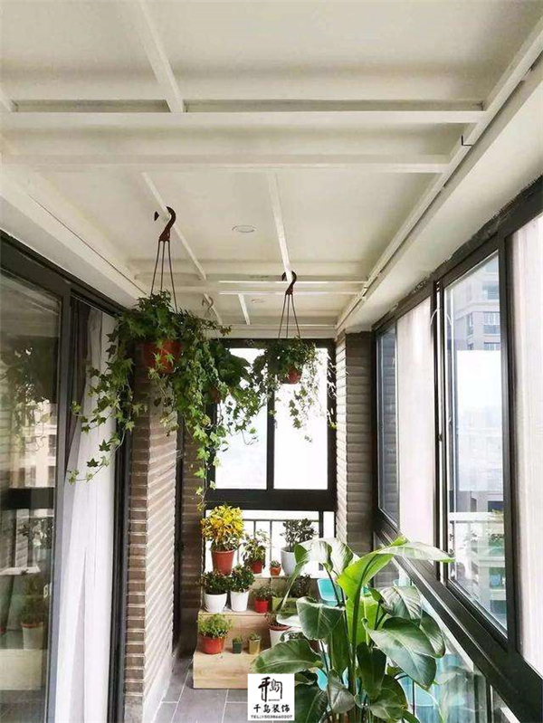 客廳陽臺一分為二,準(zhǔn)確的說是功能上一分為二,一半是曬衣區(qū),一半是休閑區(qū)(種花種草),滿足了多種功能需求,而且曬衣區(qū)剛好客廳看不到,所以整體也更加美觀;