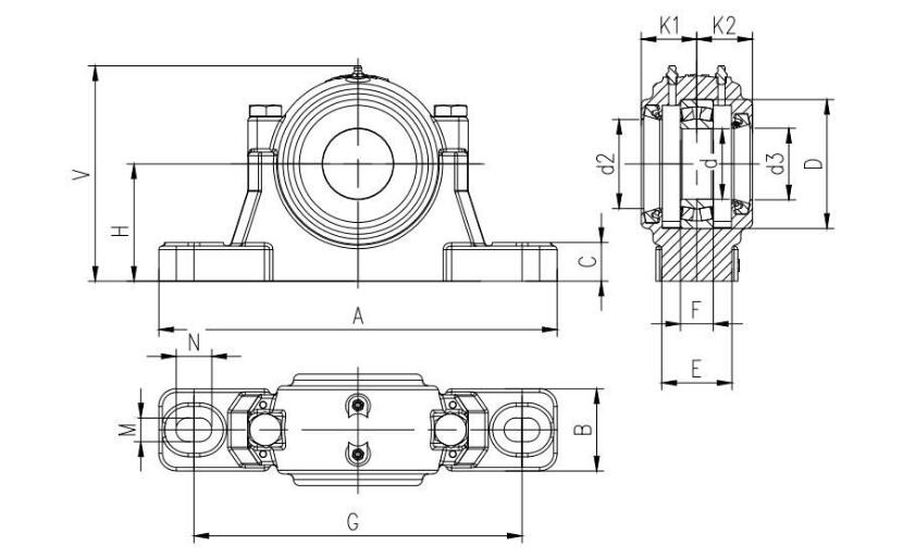剖分式軸承座的上蓋和底座可分離,主要承受徑向載荷,適合于圓柱孔和圓錐孔的調(diào)心滾子軸承和調(diào)心球軸承。