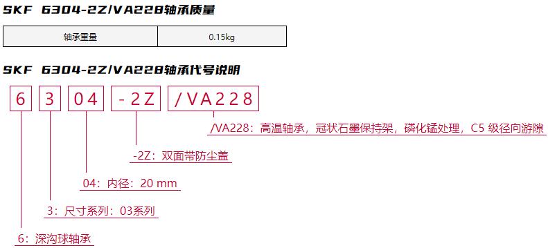 后綴列表:【-2Z:雙面帶防塵蓋】【/VA228:高溫軸承,冠狀石墨保持架,磷化錳處理,C5 級徑向游隙】。