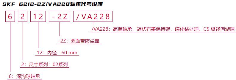 后綴列表:【-2Z:雙面帶防塵蓋】【/VA228:高溫軸承,冠狀石墨保持架,磷化錳處理,C5 級(jí)徑向游隙】。