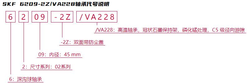 后綴列表:【-2Z:雙面帶防塵蓋】【/VA228:高溫軸承,冠狀石墨保持架,磷化錳處理,C5 級(jí)徑向游隙】。