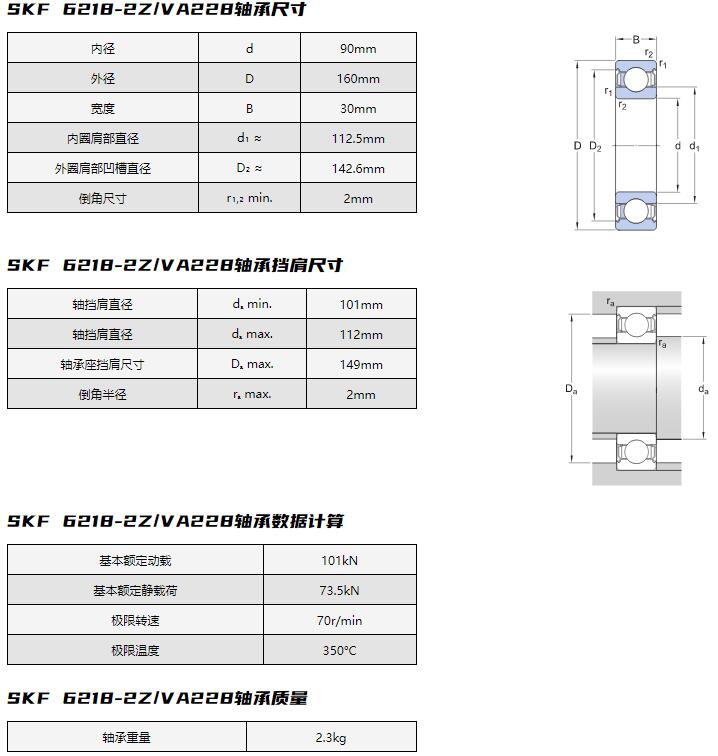 SKF 6218-2Z/VA228軸承屬于用于高溫應(yīng)用場(chǎng)合的單列深溝球軸承,需要進(jìn)行跑合:No。